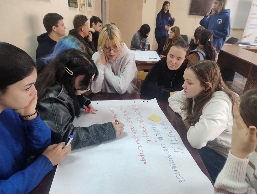 23 жовтня в бібліотеці центру відбулося заняття для студентів випускних груп на тему «Адаптивність: як залишатися гнучкими у змінному світі», організоване в межах діяльності Центру кар’єри. Захід провели спеціалістки з молодіжних ініціатив громадської організації «10 квітня» – Катерина Ковпак та Анжеліка Вільховатська. Під час заняття студенти обговорювали, що означає бути адаптивним у сучасному світі, як розвивати гнучкість мислення, долати стрес та ефективно реагувати на зміни у навчанні, роботі й особистому житті. Учасники активно долучалися до інтерактивних вправ, дискусій і практичних завдань, які допомогли краще зрозуміти власні сильні сторони та ресурси. Особливу увагу тренерки приділили розвитку емоційної стійкості, саморегуляції та вмінню приймати рішення в умовах невизначеності – важливим навичкам для майбутньої професійної діяльності. Захід пройшов у теплій, доброзичливій атмосфері. Студенти висловили вдячність за змістовну й надихаючу зустріч, що допомогла подивитися на адаптивність як на можливість особистісного розвитку. Дякуємо ГО «10 квітня» за плідну співпрацю та підтримку молоді у підготовці до професійного життя!