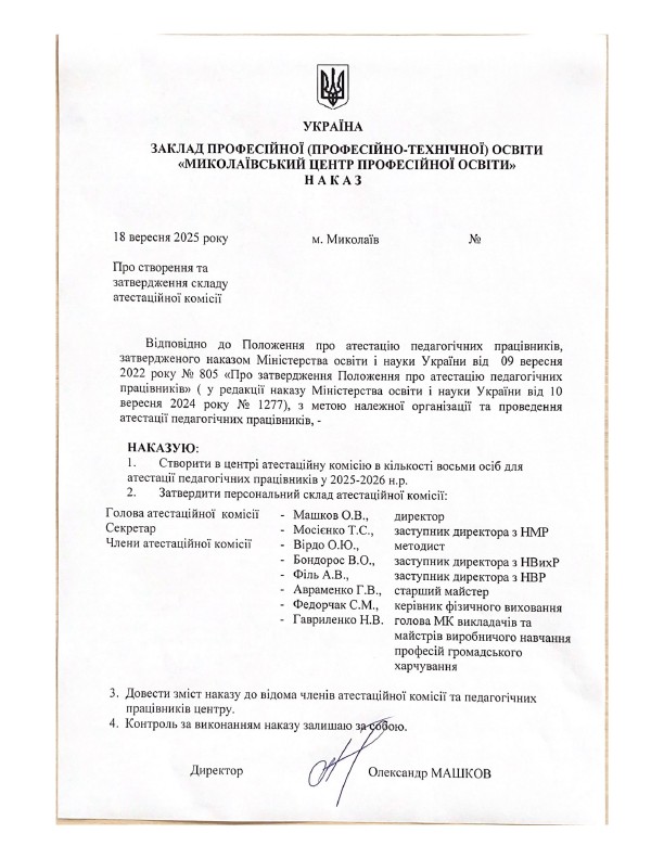 Атестація педагогічних працівників Наказ МОН № 805 від 09.09.2022 “Про затвердження Положення про атестацію педагогічних працівників“ Наказ МОН №1277 від 10 вересня 2024р. “Про внесення змін до Положення про атестацію педагогічних працівників (зареєстрований в Міністерстві юстиції України 30 жовтня 2024 року за № 1634/42979)””