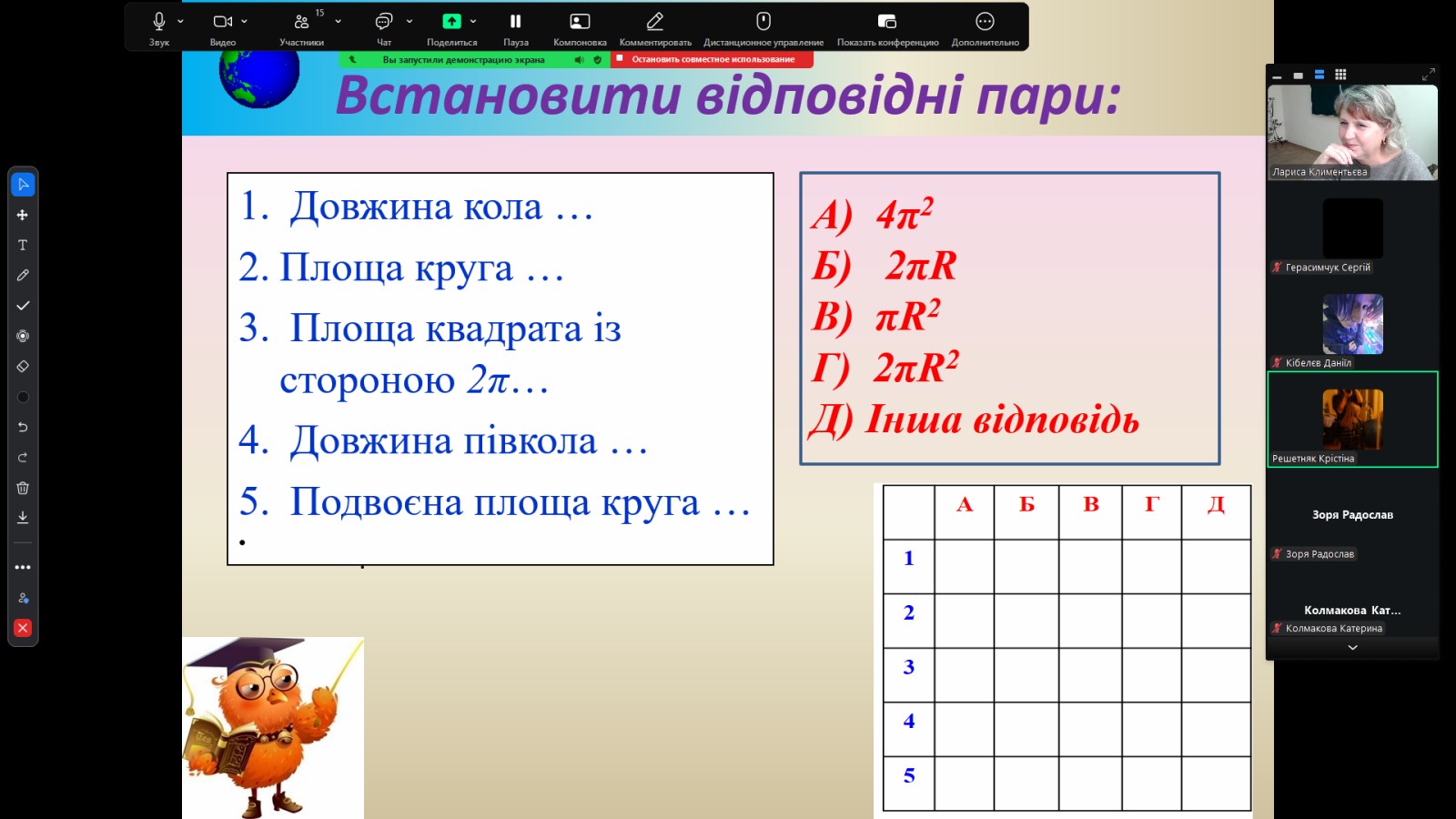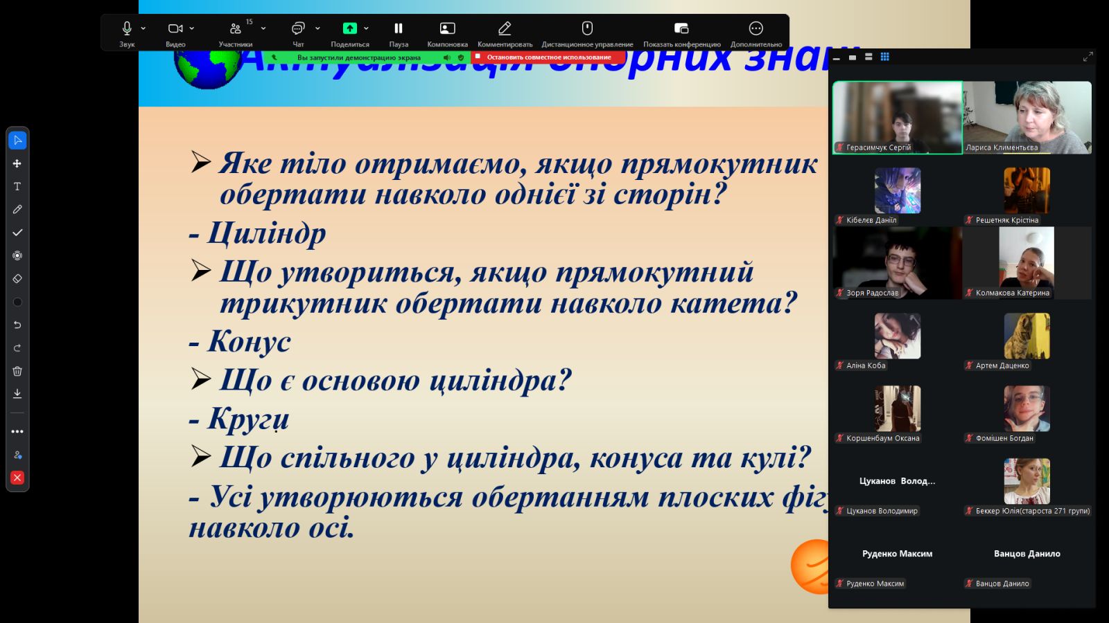 20 листопада 2025 р. викладач Климентьєва Л.М. провела урок з геометрії для здобувачів освіти групи 271 за професією “Оператор з обробки інформації та програмного забезпечення” з теми “Куля. Сфера”. Заняття пройшло у сучасному інтерактивному форматі з використанням цифрових освітніх платформ.