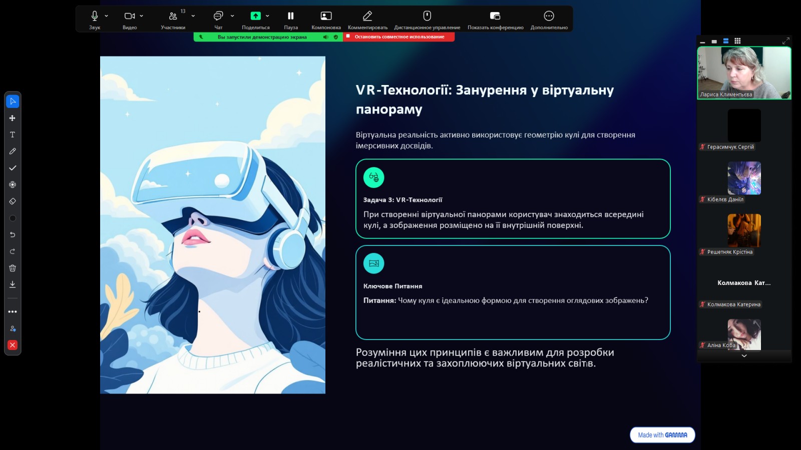 Окрему увагу викладач приділив задачам з практичним спрямуванням. Здобувачі освіти розглядали приклади застосування сферичних форм у комп’ютерній графіці, 3D-моделюванні, дизайні інтерфейсів та візуалізації даних — галузях, актуальних для майбутніх операторів програмного забезпечення.