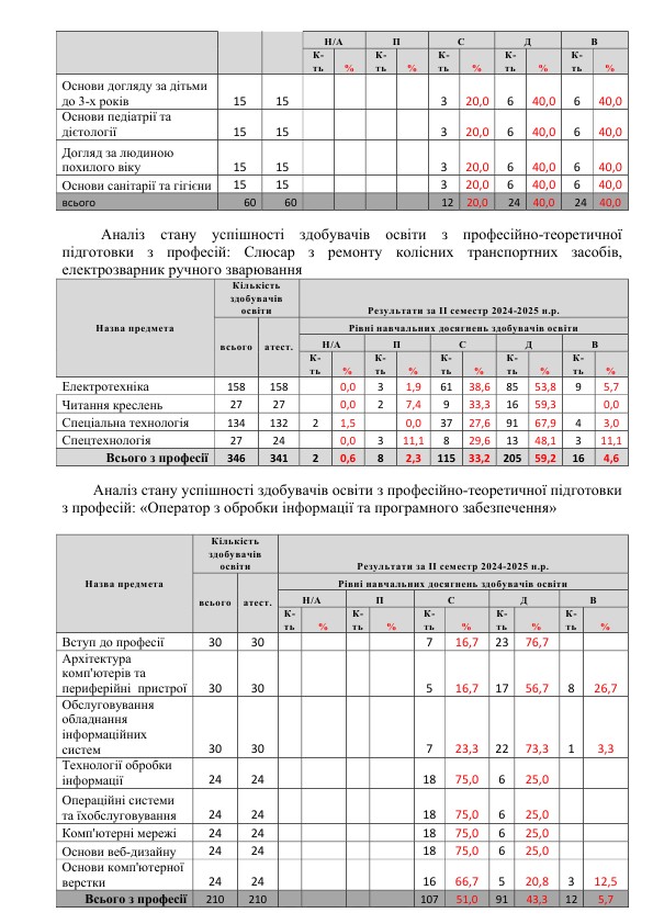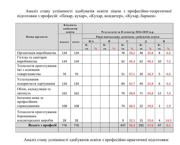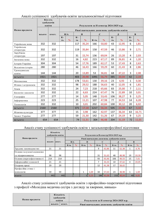 Моніторинг навчальних досягнень здобувачів освіти за ІІ семестр 2024-2025 н.р.