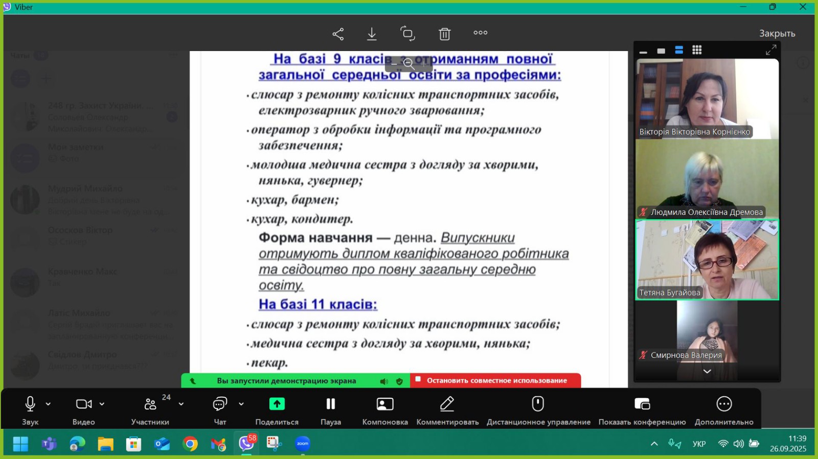 26.09.2025 р. в межах реалізації плану профорієнтаційної діяльності на 2026/2027 навчальний рік викладачами ЗП(ПТ)О «МЦПО»: Корнієнко Вікторією Вікторівною та Бугайовою Тетяною Леонідівною була проведена профорієнтаційна онлайн-зустріч з учнями 9 класу МГ№43.