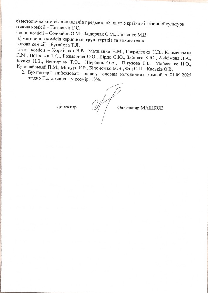 Кадровий склад закладу освіти згідно з ліцензійними умовами