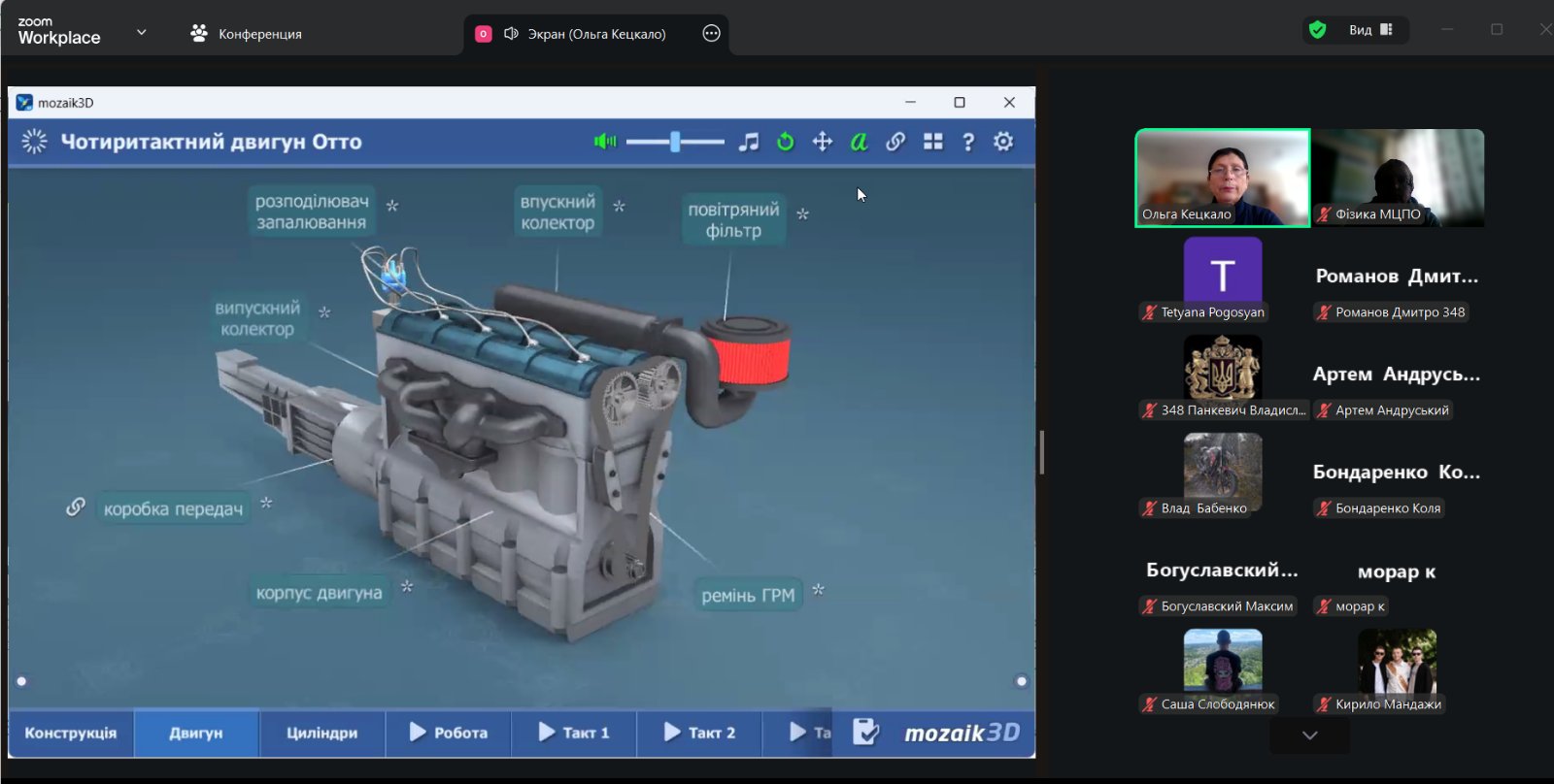 Тема: "Проведення випробування ДВЗ на стенді". При проведені уроку використовувалась синхронізація з предметами: фізика, хімія, математика, екологія, інформатика, а також з виробничими технологіями.