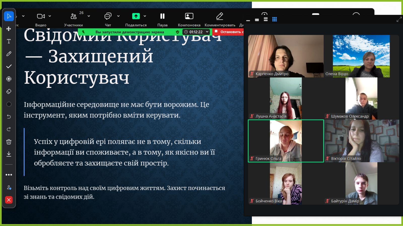 Проведений захід сприяв формуванню цифрової грамотності, розвитку навичок безпечної поведінки в онлайн-середовищі та підвищенню рівня інформаційної безпеки серед молоді.