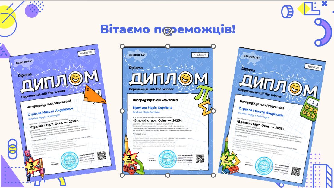 Здобувачі освіти ЗП (ПТ) О «Миколаївський центр професійної освіти» взяли активну участь в Всеукраїнській дистанційній олімпіаді з математики «Вдалий старт. Осінь- 2025», що проходила на освітній платформі «Всеосвіта».