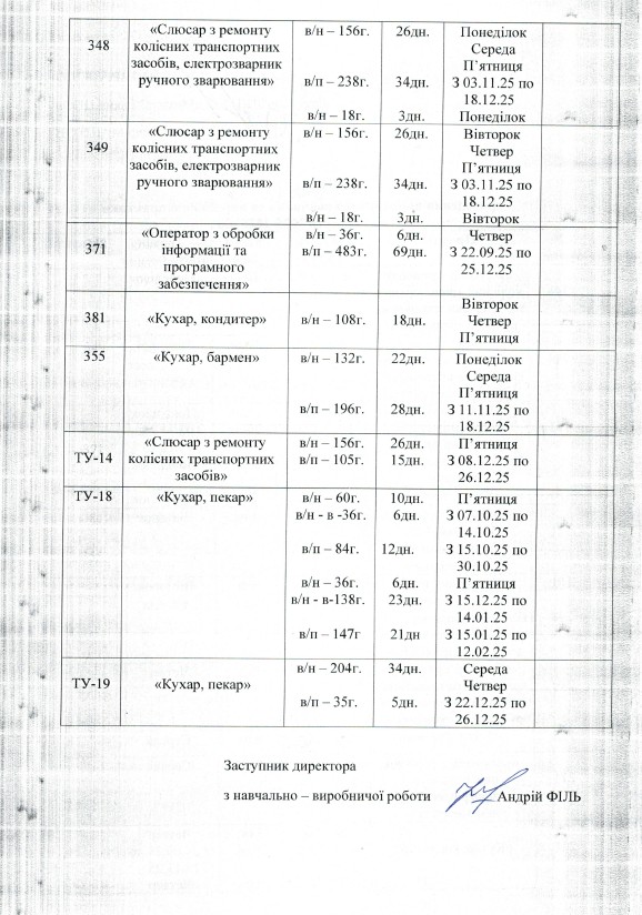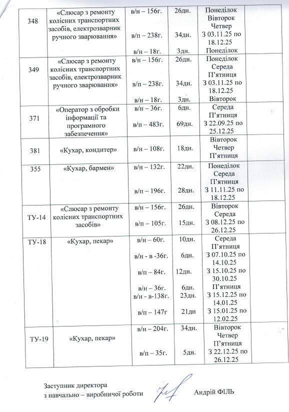 Кадровий склад закладу освіти згідно з ліцензійними умовами