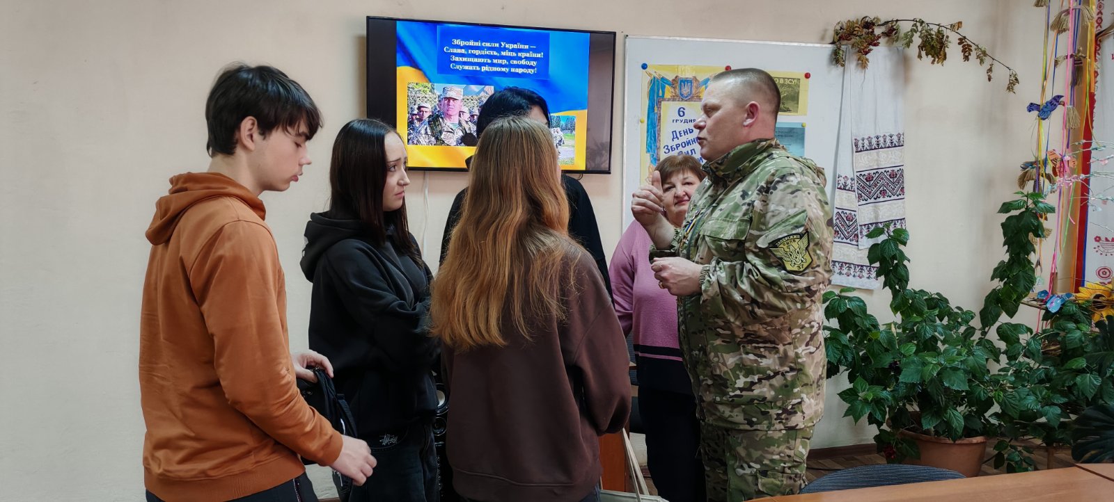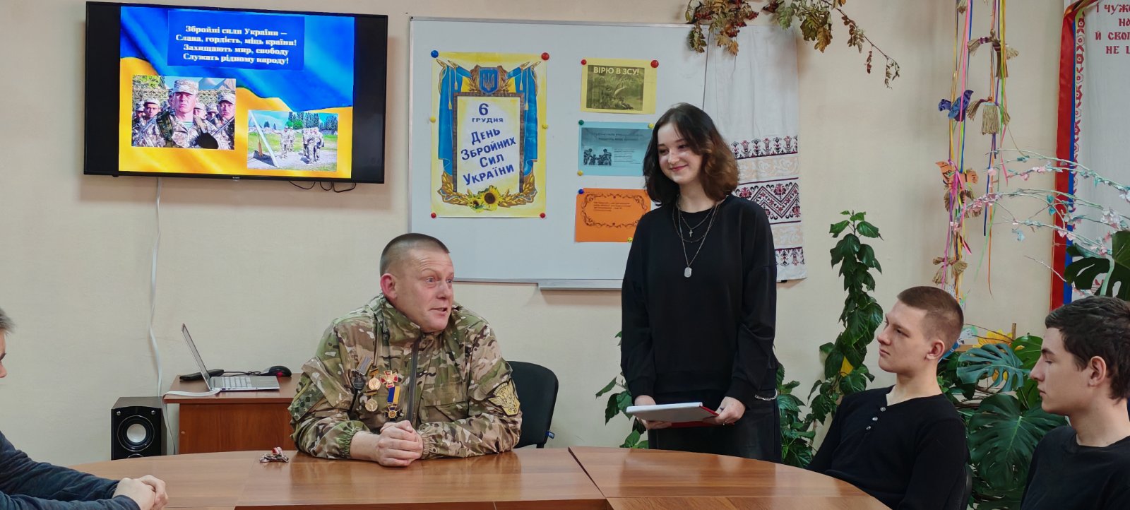 У своїй розповіді Сергій Мирославович поділився власним досвідом служби, реаліями фронтових буднів, історіями про побратимів і виклики, які доводилося долати щодня. Він говорив щиро й відверто — про страх і відповідальність, про силу духу й підтримку друзів, про цінність життя та свободи. Студентів вразила його скромність, гідність та людяність, з якою він відповідав на численні запитання.